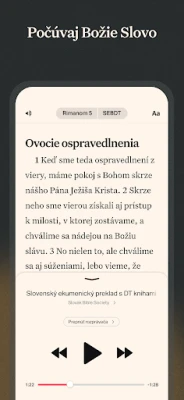 Aplikácia Biblia od YouVersion je navrhnutá tak, aby podporila vašu cestu s Bohom na každom kroku. Okrem širokej škály prekladov si môžete vychutnať aj zvukové verzie vybraných Písiem, ktoré umožňujú počúvať Slovo aj na cestách. Pravidelne vás môže inšpirovať aj mini-aplikácia „Verš dňa", ktorá prináša každodennú dávku povzbudenia. S bezplatným účtom YouVersion sa všetky vaše osobné nastavenia, poznámky a plány čítania bezpečne synchronizujú, čo zaručuje, že vaše štúdium je dostupné na akomkoľvek zariadení. Prispôsobte si vzhľad čítania od fontov po tmavý režim a zažite bezkonkurenčnú podporu na svojej duchovnej ceste.
